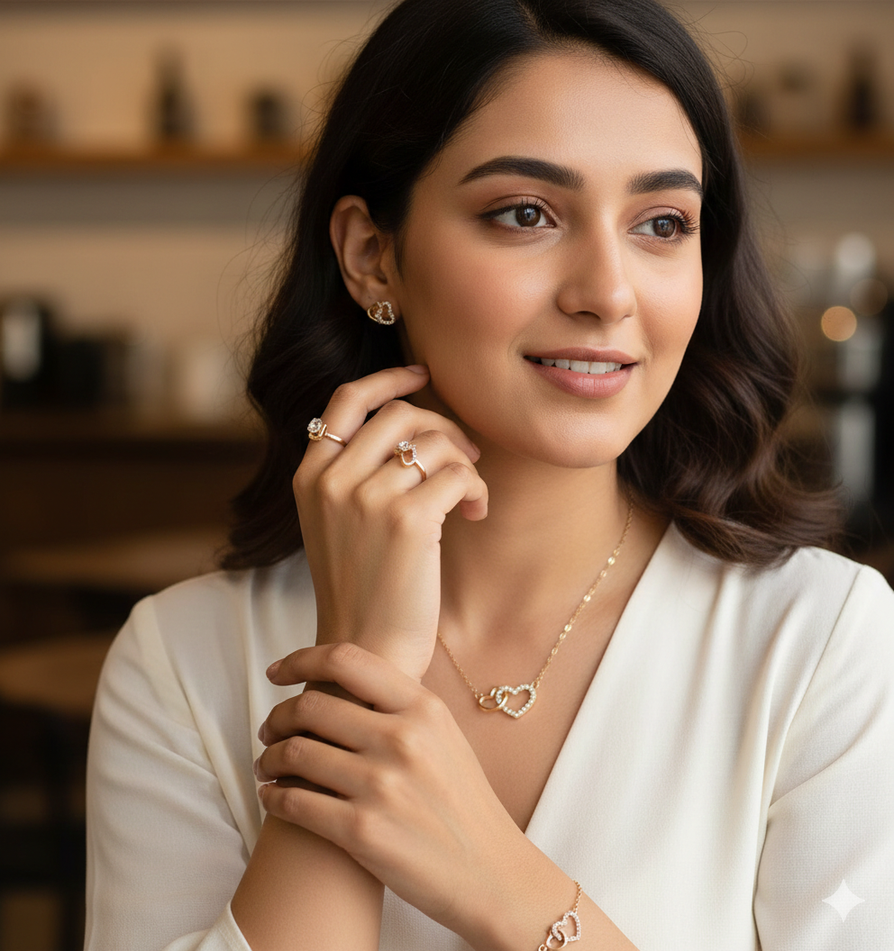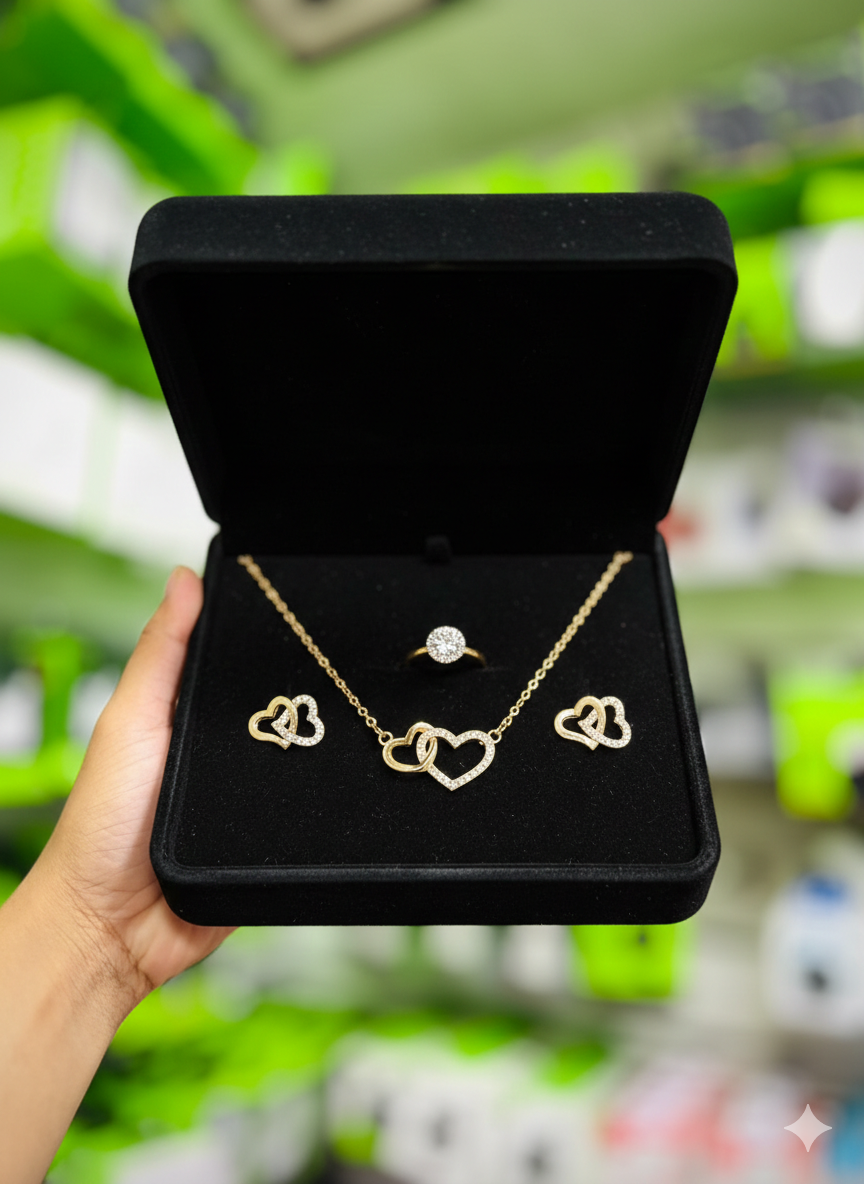 π Heart-shaped jewelry set β necklace, bracelet, ring & earrings