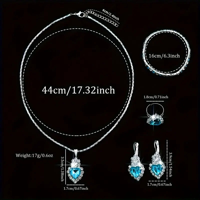Celebrate the important women in your life with a luxurious and meaningful gift that radiates elegance and love. This 5-piece womenโs gift set includes a beautifully crafted Roman-style Quartz wristwatch paired with five dazzling sky-blue heart-shaped jewelry pieces, all packed in a chic gift box.